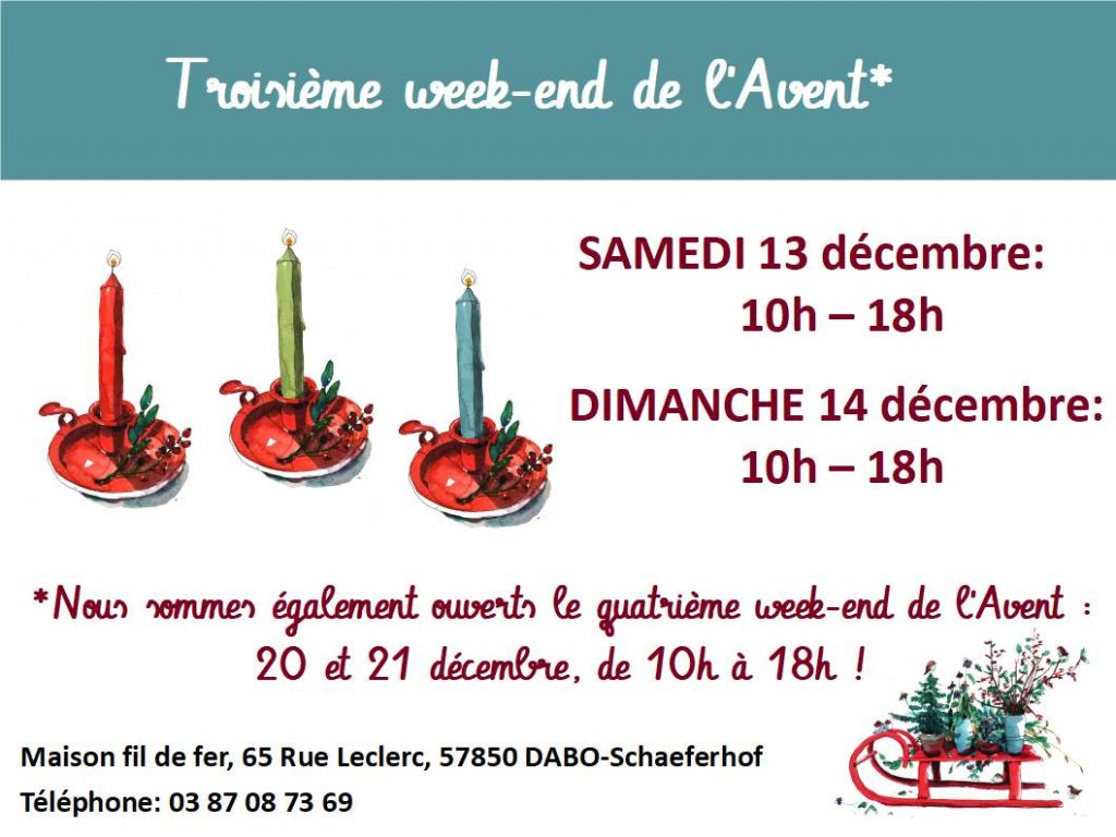Premier week-end de l’Avent : Marché de Noël à Dabo. La Maison fil de fer est également ouverte de 10 à 18 h!